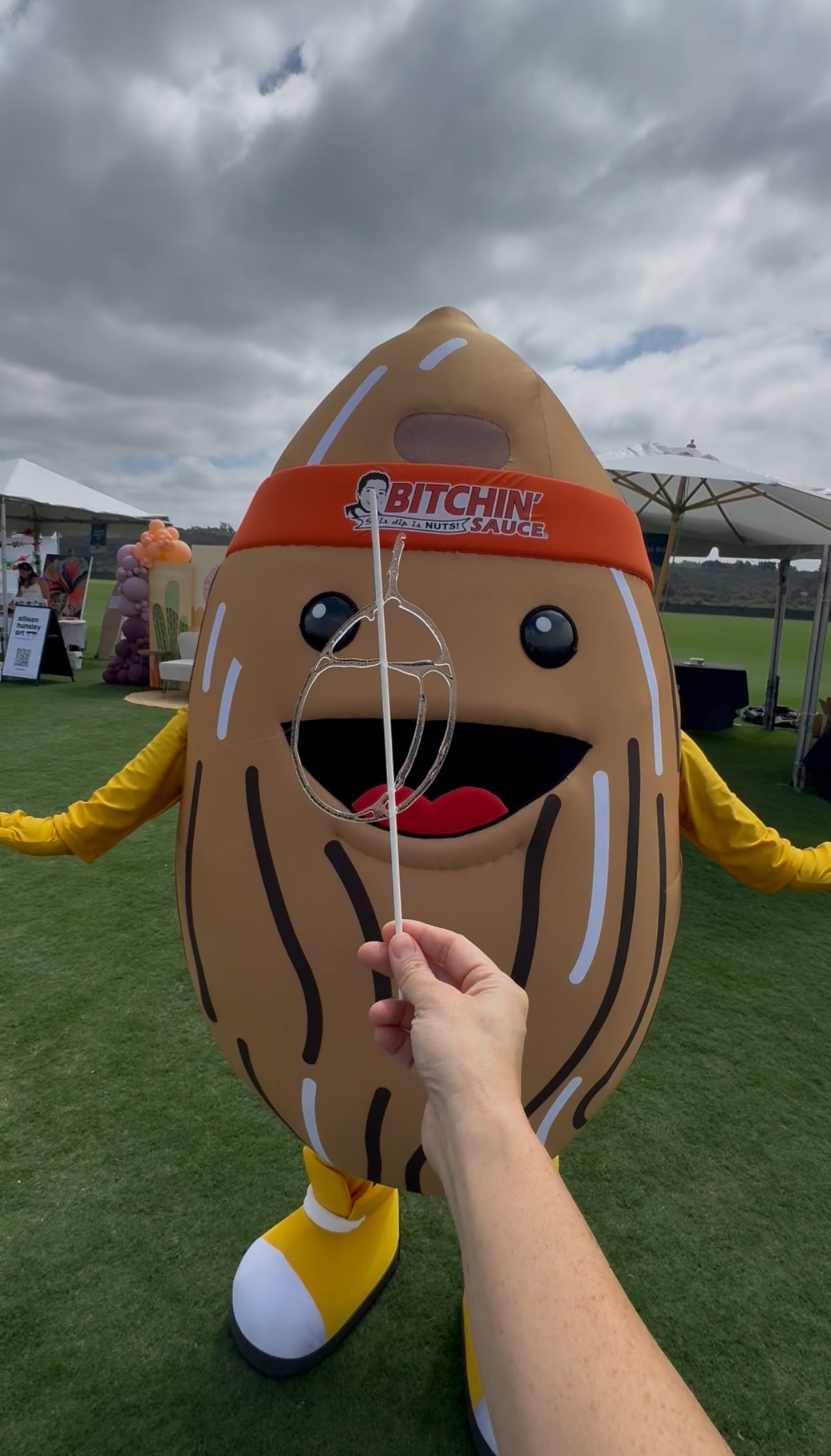 We printed a custom almond lollipop and handed it to the Bitchin’ Sauce mascot — and yes, everyone stopped to watch.